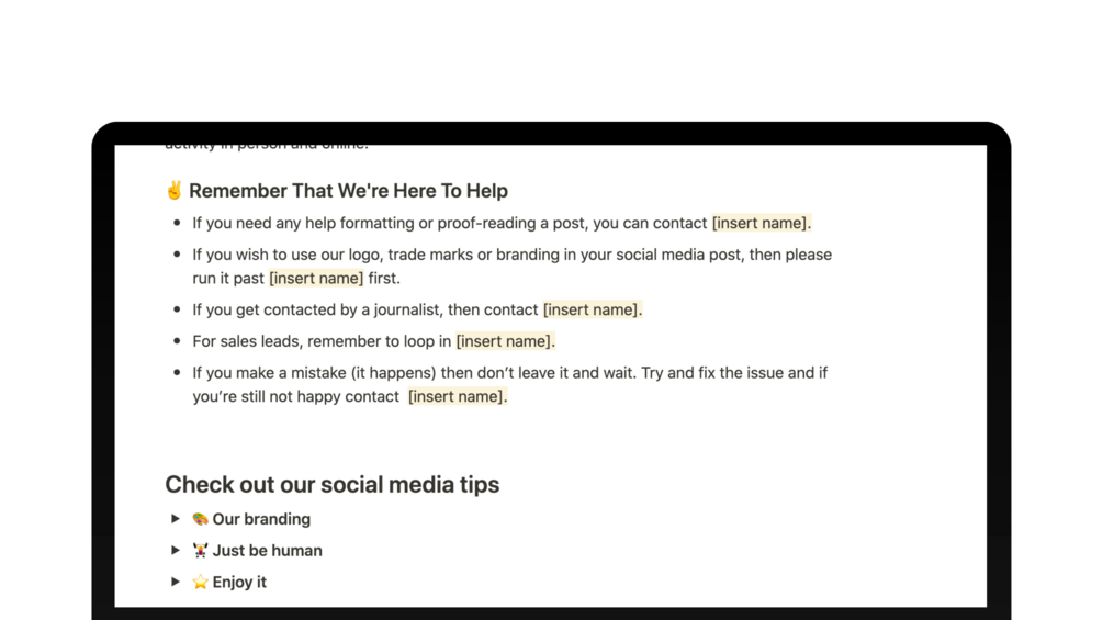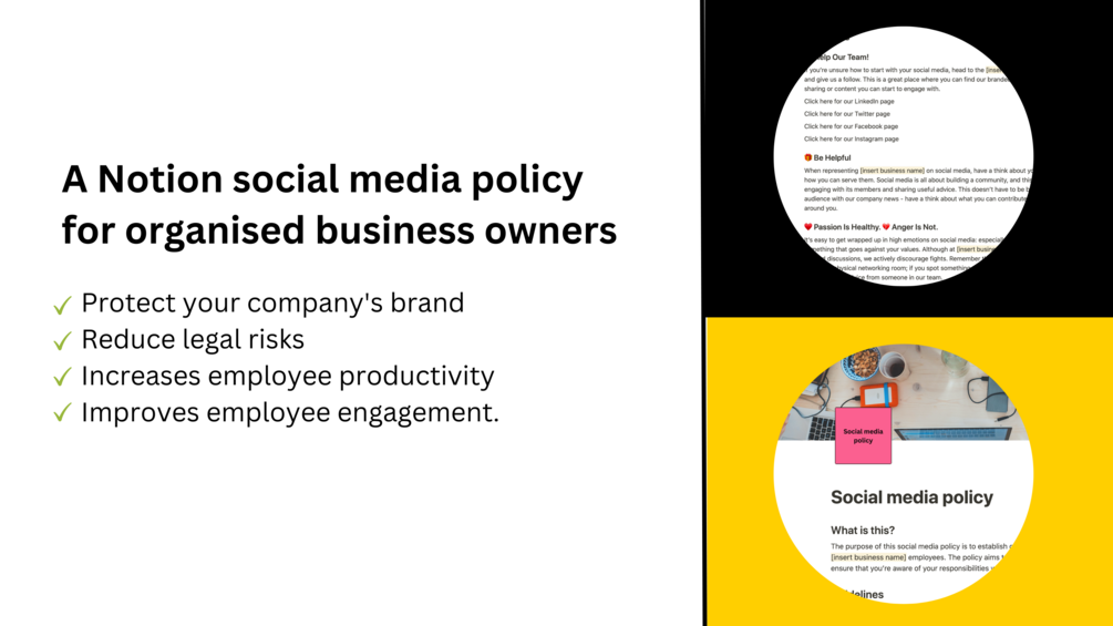 You'll get a Notion social media policy template ready for your team to duplicate, fill in and make your own.